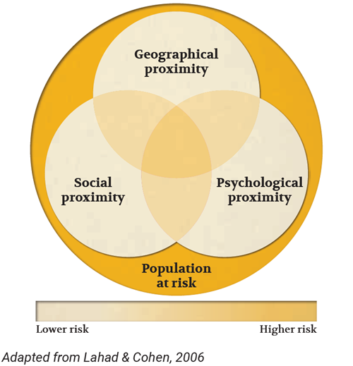 Geographical proximity: Young people who have witnessed the death, were exposed to it or had contact with the person shortly before they died. Social media can substantially broaden the exposure and impact of the suicide.